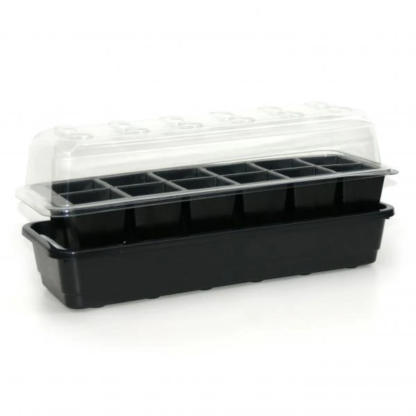 Zelf bevloeiende kweekset of zaaibak met 12 opkweekcellen. Een zeer goed functionerende kweekset geschikt voor gebruik op een vensterbank of in de serre, kas, veranda,…Ideale kweekbak voor een goede kieming van zaailingen of perfecte wortelvorming van stekken. Deze stevige zaaikas-kweekbak kan je meerdere jaren na elkaar gebruiken.